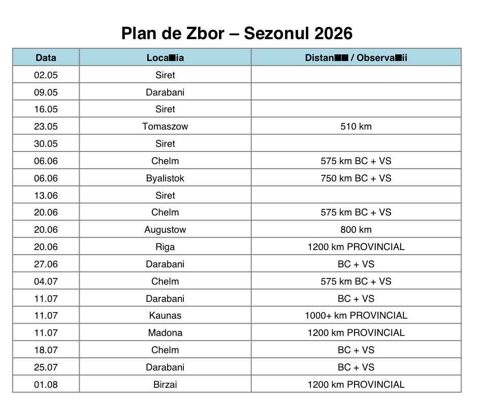 Plan de zbor competitional 2026